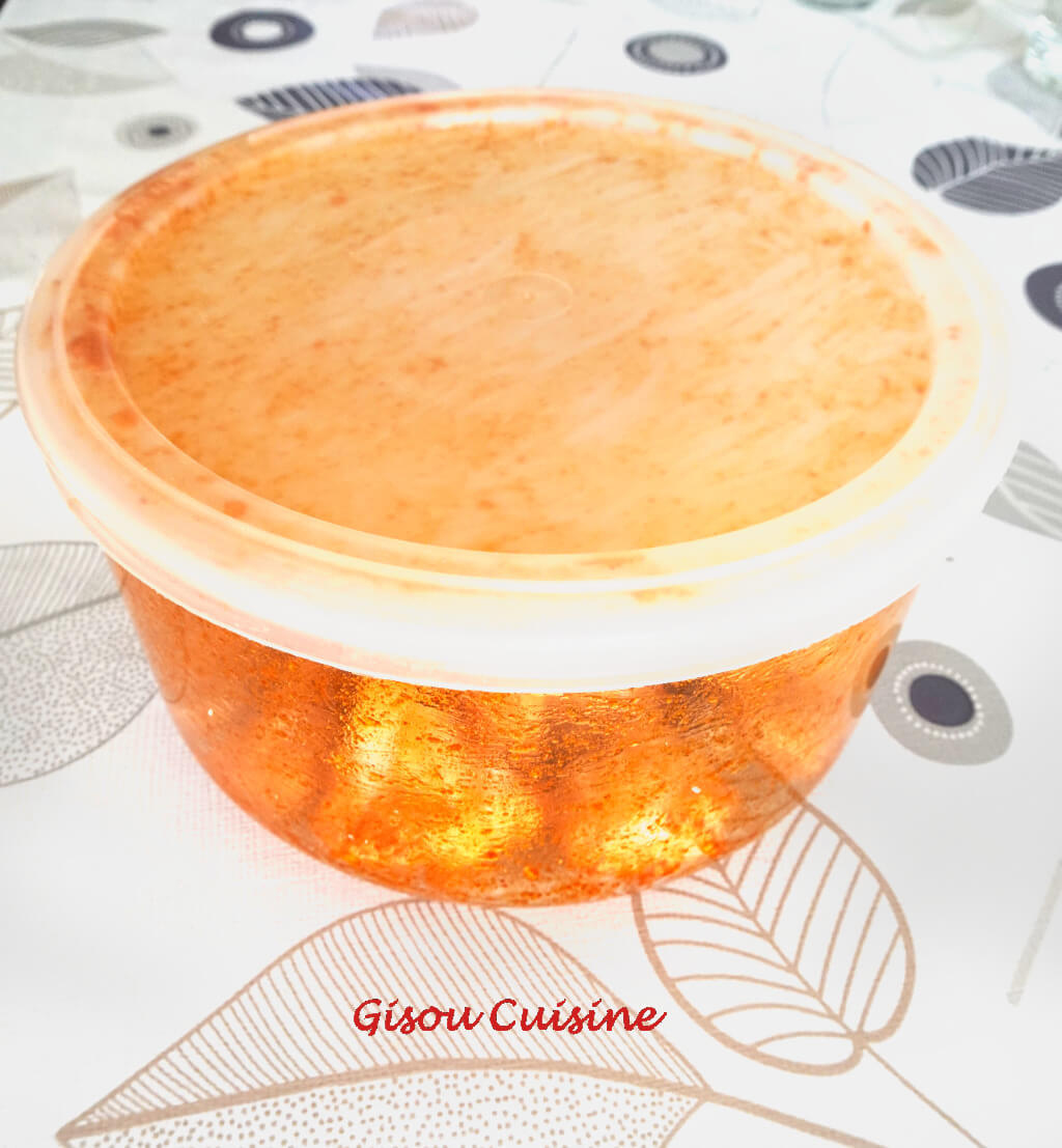 - Dans un saladier muni d’un couvercle, mélangez 3 cuillères à soupe d’huile d’olive, 1 cuillère à café d’ail en poudre et une cuillère à café de paprika.